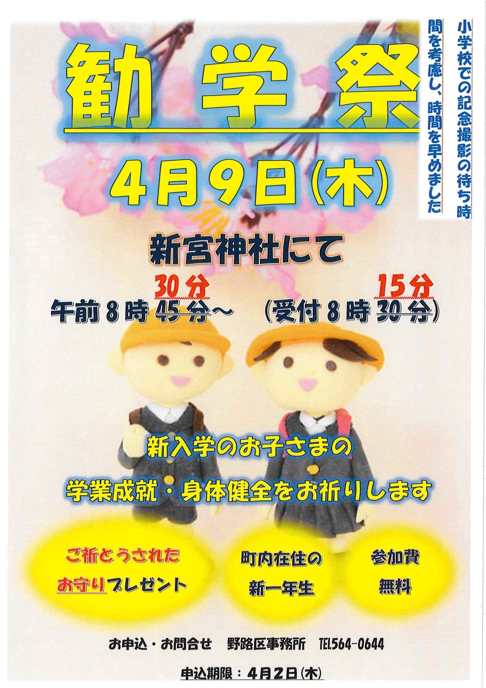 令和8年度 勧学祭のお知らせ(時間変更)